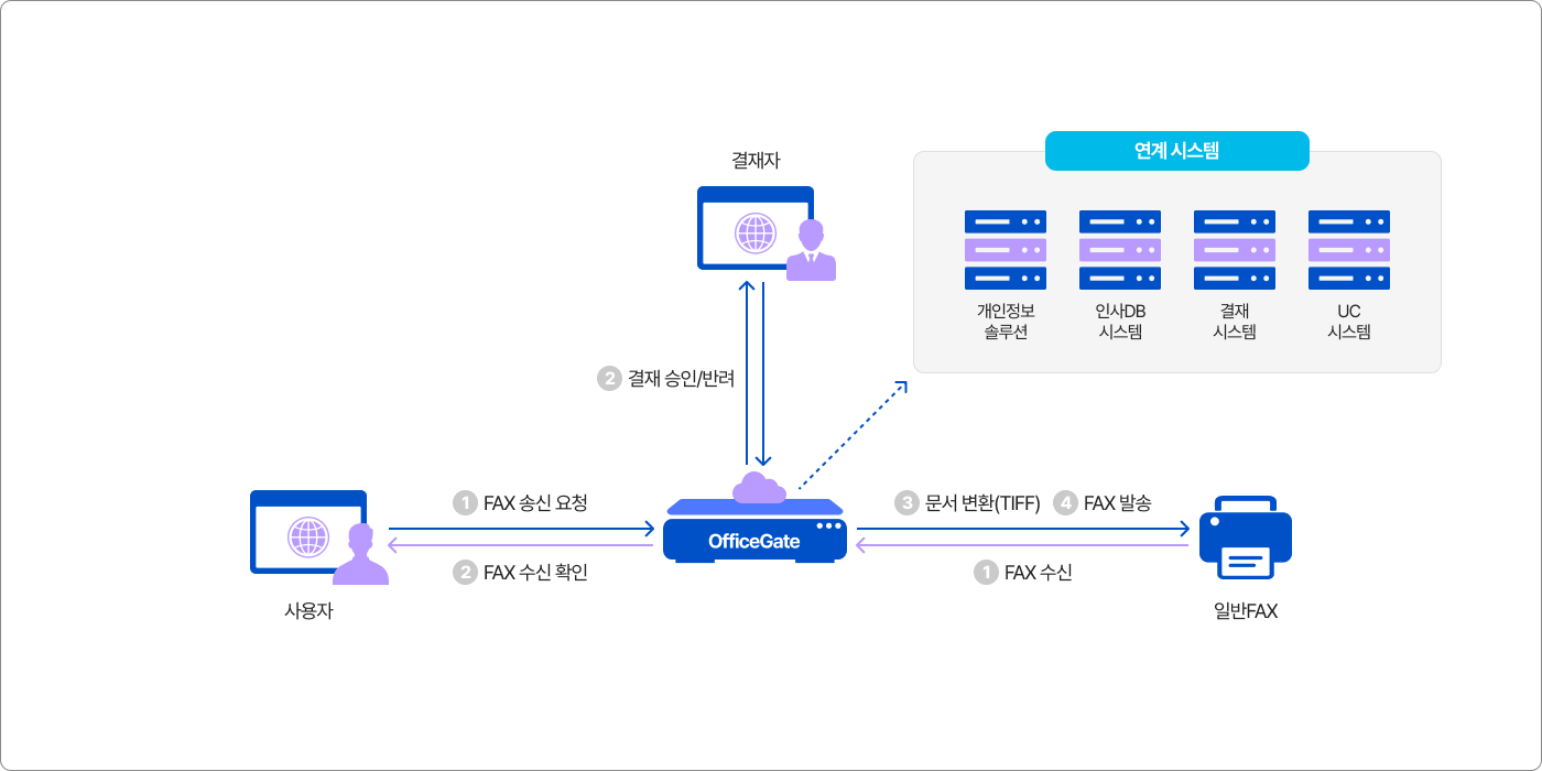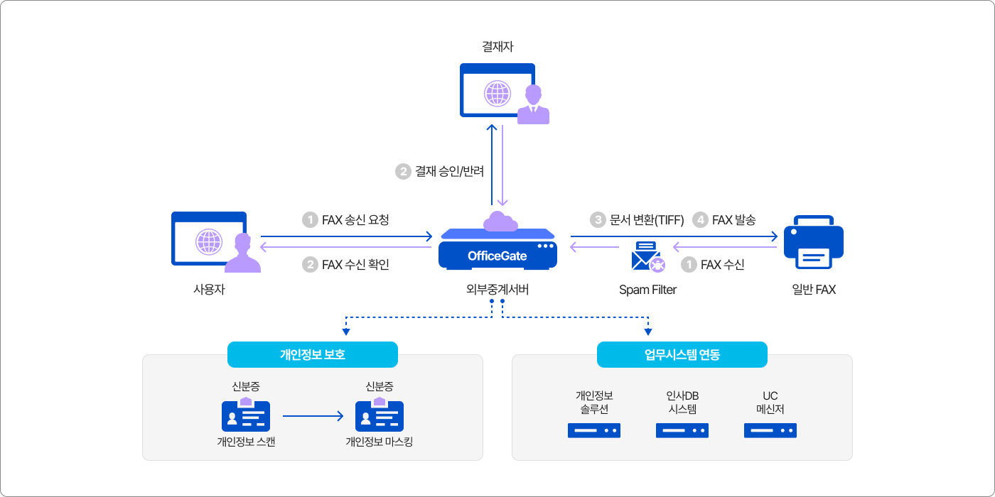 로 공공/금융/일반 기업의 개인정보 보호 환경에 적합합니다. 또한 팩스 발송시 결재승