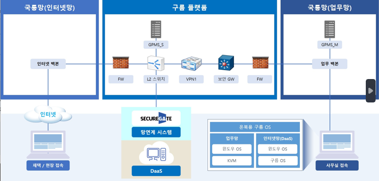 국방부는 올해 6월까지 국가공무원 100명의 PC를 '구름 OS'가 탑재된 온북으로 대체하고, 업무망ㆍ 인터넷망 VDI 환경과 보안 기능을 수행하는 구름 플랫폼을 구축할 계획이다.
